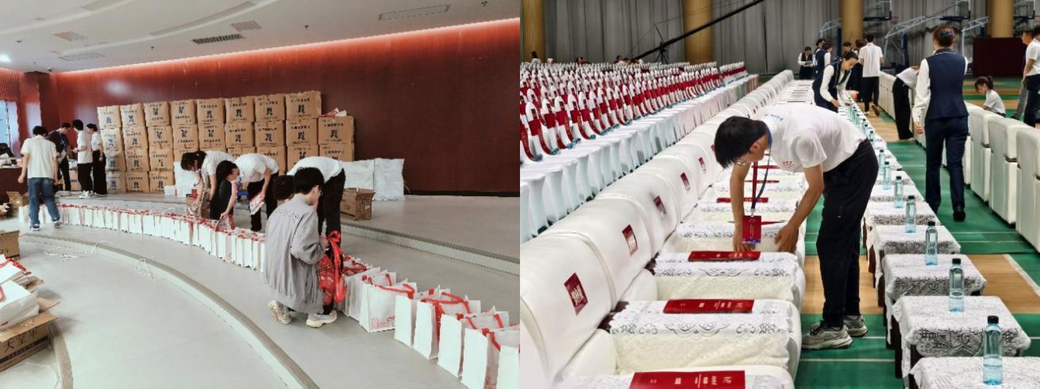 在庆祝大会物料准备工作中,志愿者们坚持“不放过任何细节”的工作标准,高效完成各项繁琐任务;校庆舞会音控组志愿者为消除视频旁白的细微杂音,反复排查设备至深夜;中外大学校长论坛会场布置组志愿者对每一份会议资料的摆放位置进行精准调试,确保会场庄重有序。他们以高度负责的态度,保障各项活动顺利进行。