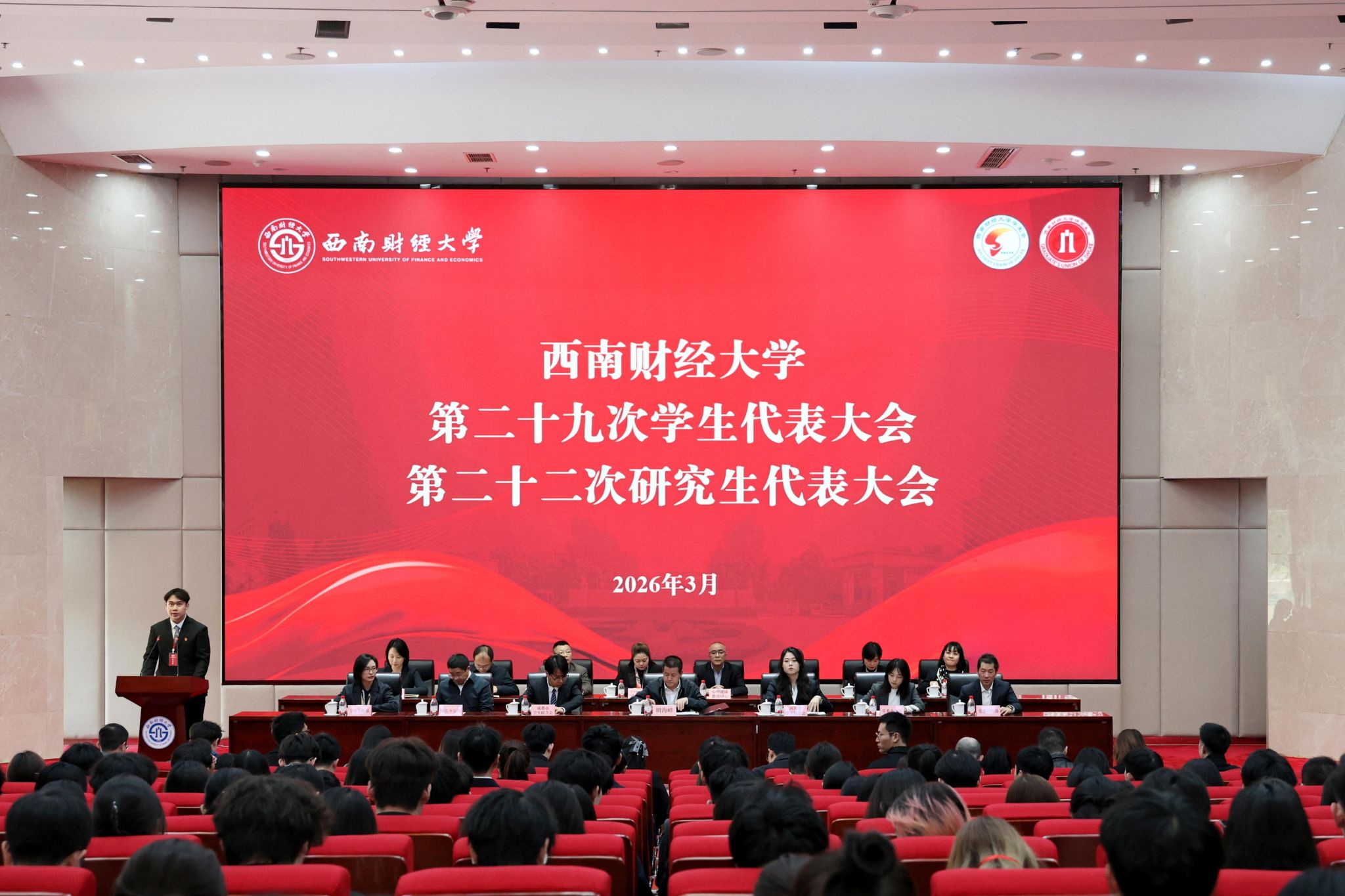 3月24日,经学校党委和四川省学联批复同意,西南财经大学第二十九次学生代表大会、第二十二次研究生代表大会在柳林校区召开。